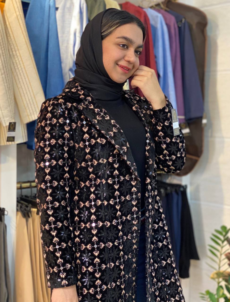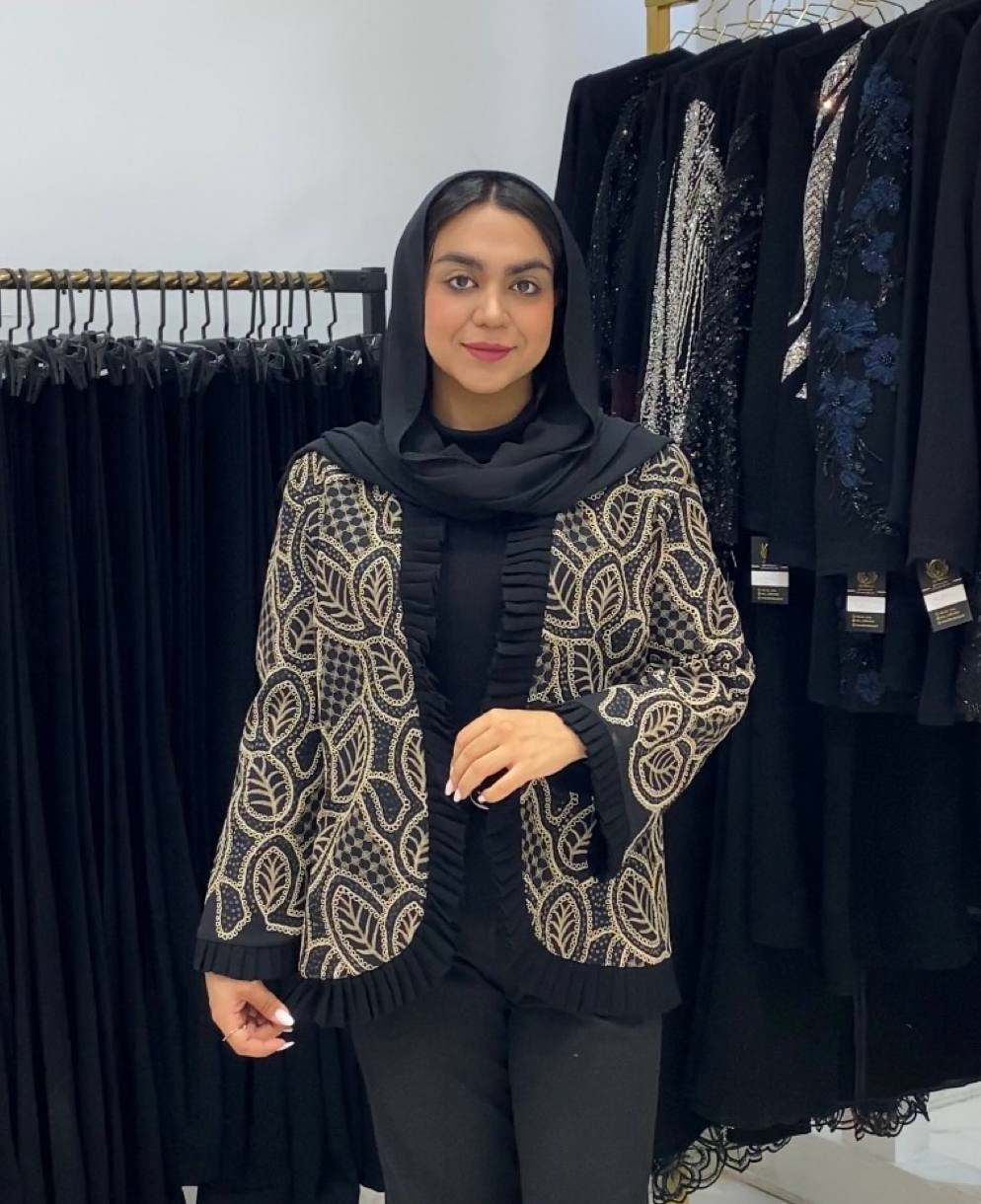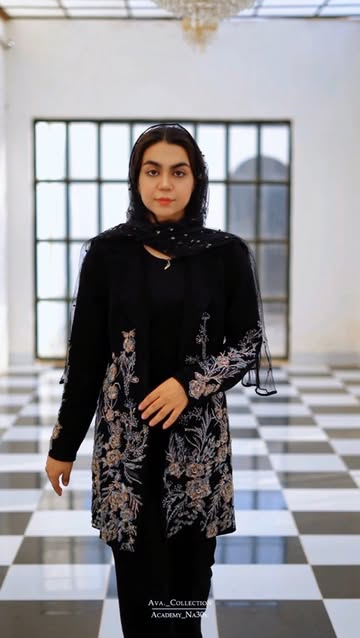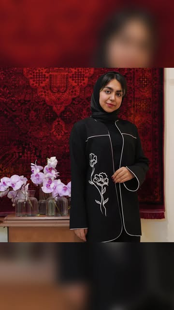 کت مشکی با گل برجسته و جواهردوزی