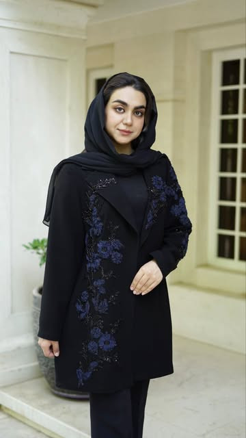 هر جز از این کت شامل هنر، ظرافت و درخشش بینظیر است. این کت خاص با گلهای برجستهای که حاصل ساعتها ظرافتدوزی با نخ و نگینهای دستدوزه است، طراحی شده است.